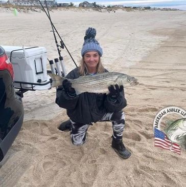 Congratulations Andie Mac who landed this winning 32" Striped Bass representing Surf Fishing LBI